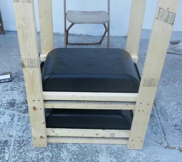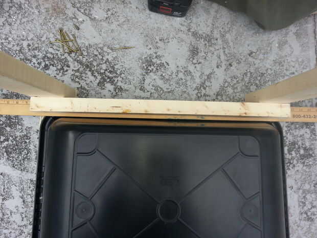 Coloque su objeto vacío en el lado del labio de la tina luego colocar la tira de 28" en la parte superior, alinear todo y pretaladrar los agujeros del tornillo esta vez con 3" tornillos para madera.
