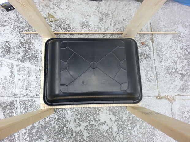 Hecho cerca, tomar los (4) 4" trozos de madera sobrante y taladre sujete a la parte posterior como se muestra en fotos como tus tapones no será sólo de esta manera cuando empuja un cubo de cerrar volar hacia la parte posterior o dejan un espacio de roedor escapar.