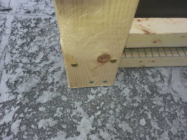 Tomar tus 4 patas (2 x 4 x 4) uno por uno y conéctelos como se muestra en la ventana Asegúrese de haga y utilice tornillos de madera de 2-1/2"(2) para cada pata colocarlos aproximadamente 2 pulgadas de los extremos como se muestra en fotos.