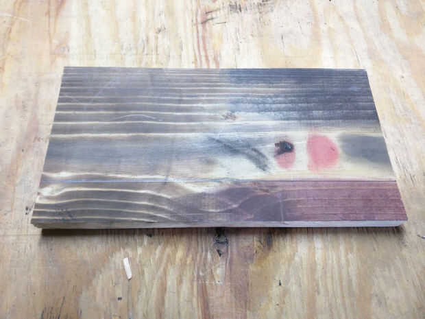 Empecé con un pedazo de pino en que previamente había usado para probar algunas manchas diferentes y 2 piezas de 2 x 4 corte a 45 grados.