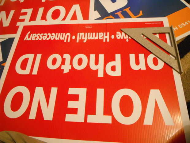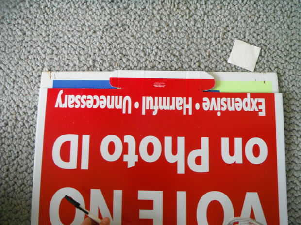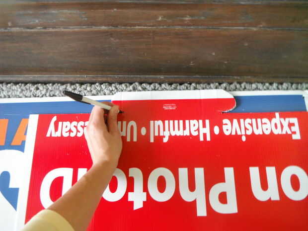 1. colocar el letrero y colocar el signo de la plantilla en la parte superior. Alinee los bordes para emparejar.