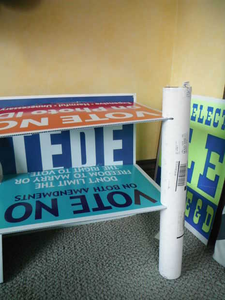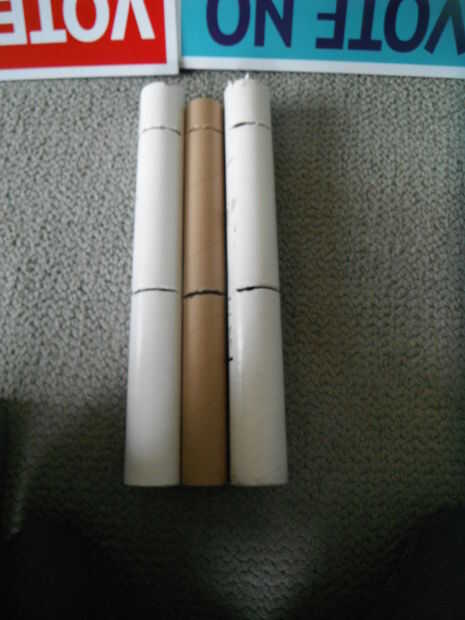 No estaba seguro cómo ancho a cortar así que comencé a cortarlas y colocándolos periódicamente a los signos para ver si debo cortar más profundo. Cortar suficientemente amplia para tanto la señal como sea posible puede deslizarse. Básicamente, hasta la esquina de la muestra se deslizó hacia el lado opuesto del tubo.