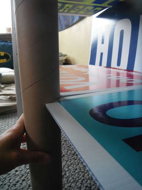 Para el tubo central, necesita hacer lo suficiente para levantar las esquinas de dos estantes pero no tanto que comprometer la resistencia del tubo. Tipo de puede experimentar como vas ya que depende de la fuerza de la tina que está utilizando. Mi tubo medio era no casi tan rígida y fuerte como los exteriores.