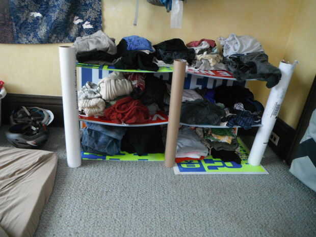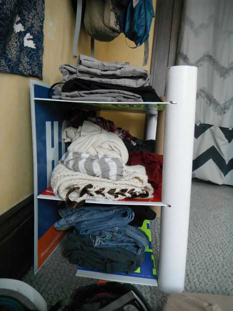 Después de poner toda mi ropa, era por favor cómo soportó incluso pensaba cedió un poco del peso. Para remediar esto, tuve la idea de comprar una longitud de 1/4 pino enrejado y simplemente deslice un trozo debajo de cada estante de la ranura de la ficha a una de las esquinas. Pero han pasado 4 meses y se sigue sosteniendo bien por lo que no he llegado a hacerlo.