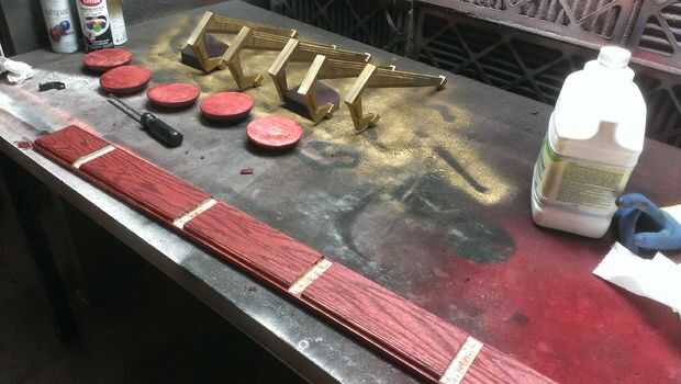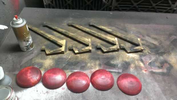 Aerosol pintado los ganchos de un color de cobre amarillo, entonces negro rociado de pintura y limpiar rápidamente con alcoholes minerales. Le da que una pátina antigua vería.