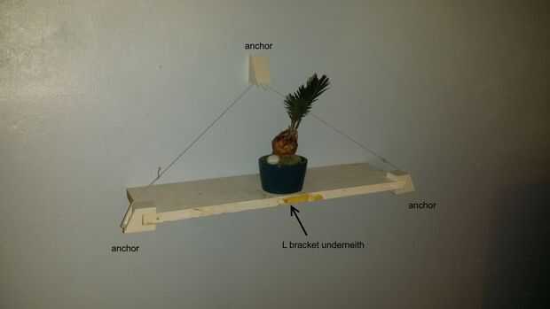 Así que primero hice un prototipo. Quería un estante que parecía un puente colgante. Mi primera idea era que el anclaje de por lo menos una pared (uno trabajó en la realización de la plataforma para no tener que imprimir otra) y sólo 2 anclajes de estante. Me di cuenta de que esto dejaría el estante sin soporte en la espalda, por lo que imprimí un poco L estante para sostener la espalda. Básicamente parecía fresco pero no muy grande. Pero trabajado como una prueba de concepto.