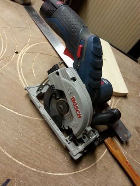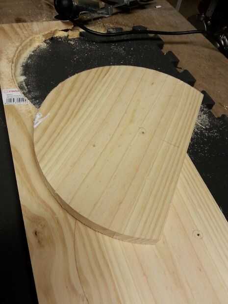 elegir una altura para el tablero y volver a cortar los círculos para obtener 2 semicírculos. usando una sierra circular.