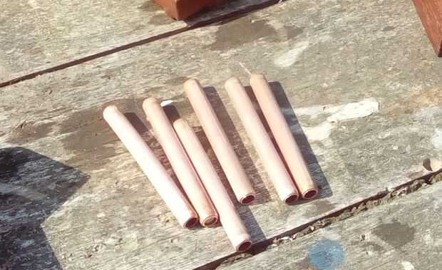 Medir cuánto necesita sus montantes de tubo de cobre seco Armando las secciones de madera con el tubo de ensayo. Mina debe ser aproximadamente 90mm.