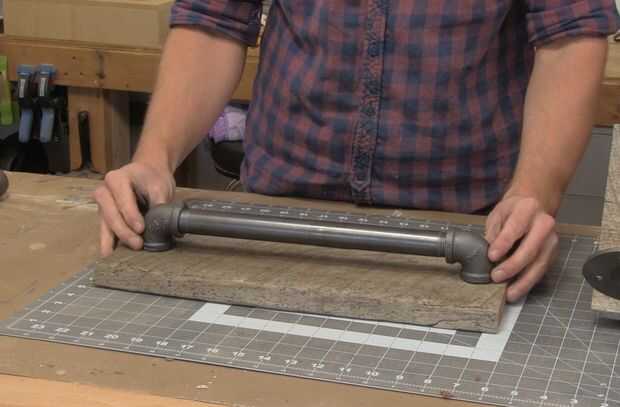 Esto puede conseguir un poco complicado si utilizas madera recuperada del borde vivo porque es difícil hacer las cosas cuadradas. Eso está bien! No necesita cosas para ser verdaderamente cuadrado, que basta con asegurarse de que tienes suficiente espacio libre de la parte posterior de la madera para que no golpee la pared y la plataforma no ha podido colgar. En mi caso, la brida del piso y el tubo espaciador de 3.5" salieron a ser unos 4 5/8" de la parte posterior de la pared para cuando puse mis agujeros, coloqué aproximadamente 4 1/4" desde el borde posterior de la madera tenía un montón de espacio libre.