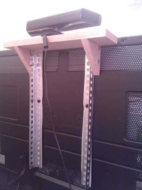 Construí este estante porque me quería levantar más mi Kinect, pero no quiere montar una estantería a la pared. Quería algo bastante oculto y algo que estaría feliz de dejar para arriba permanentemente.