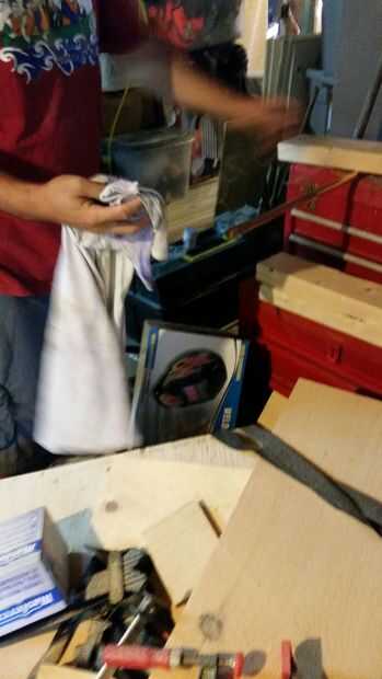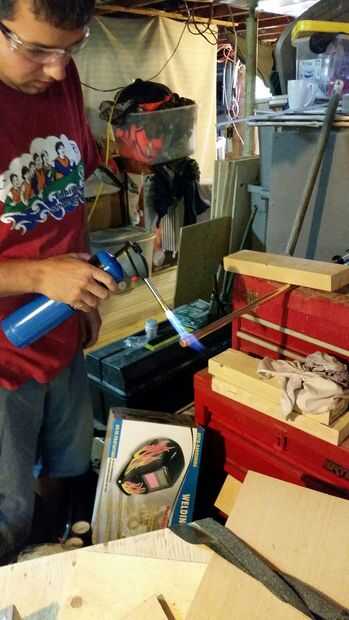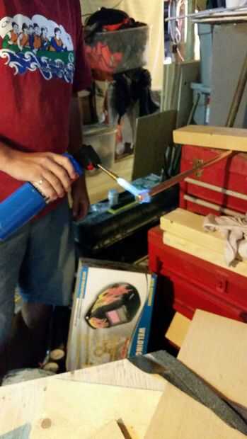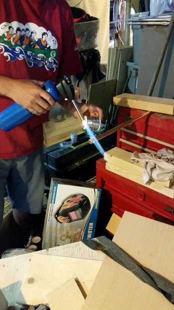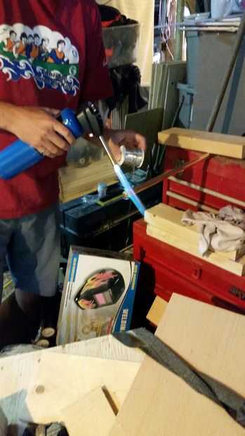 Primero nos limpiar los extremos para asegurarse de que no había ninguna ruina allí. A continuación ponemos algunos soldadura por ahi (creo que un cepillo habría funcionado mejor que se pegue el tubo en el contenedor pero no pudimos encontrar el cepillo para esto funcionó!).