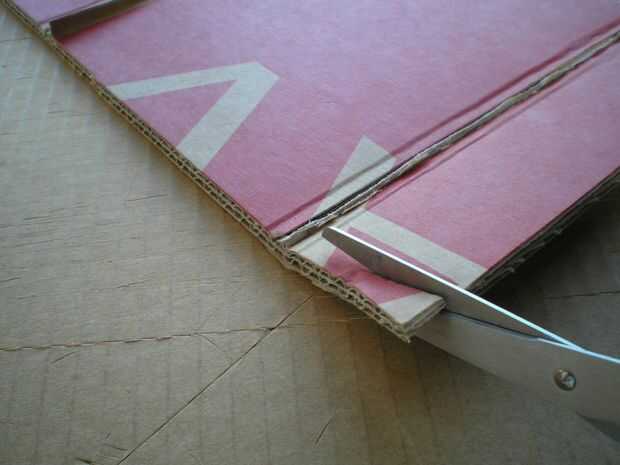 y cortarlas. También, recortar las aletas (los de 5 cm de ancho). Tenga cuidado: Si quieres un look limpio final, trabajar siempre sobre la cara impresa de cartón.