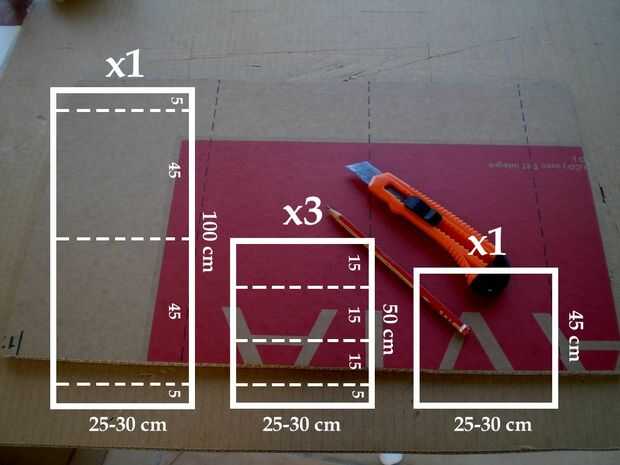 -Tres para la parte interna: 50 x 30 cm.