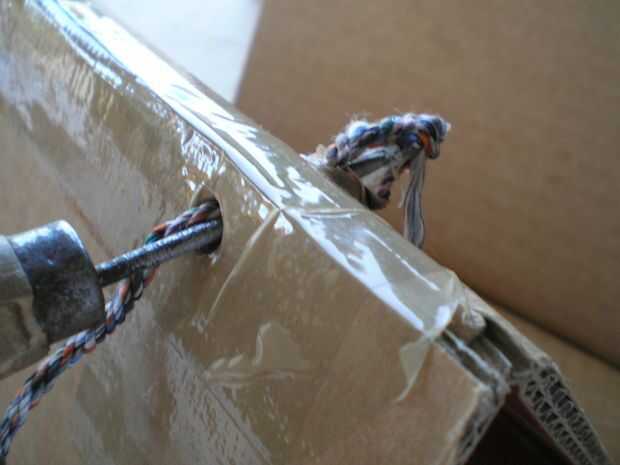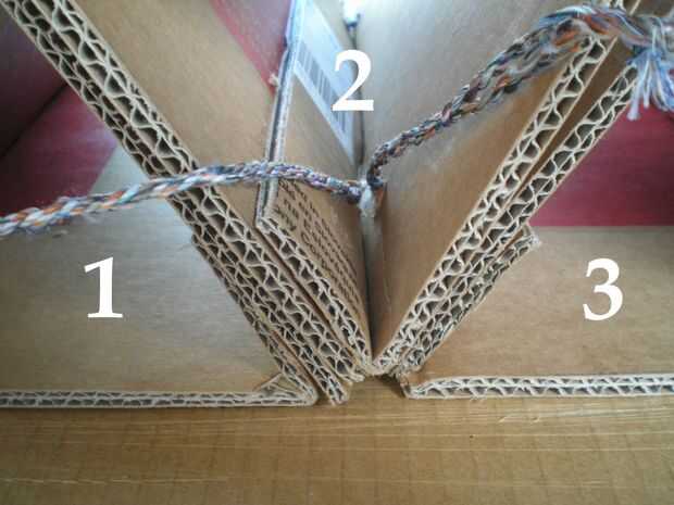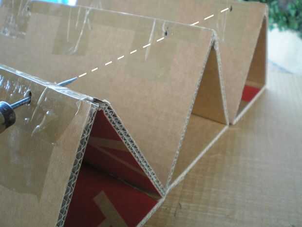 Luego coser el prisma tres por el borde con las aletas. Para eso, hacer tres agujeros en cada prisma: uno en la izquierda, otro a la derecha y otra en el centro de un borde, pero no exactamente en el borde. Luego pase la cadena por los orificios y atarla.
