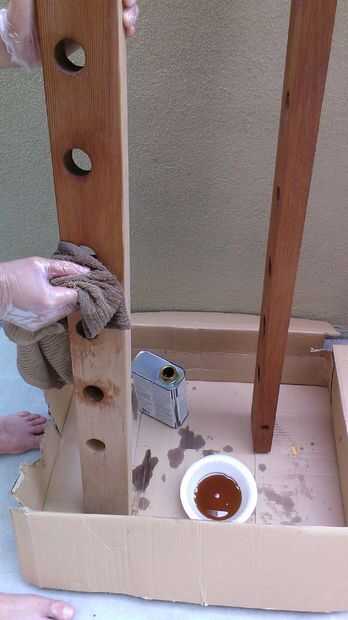 usé un aceite de teca para sacar el color y acabado de la madera.  No dude en utilizar una mancha de poliuretano, o lo que crees que se ven mejor.