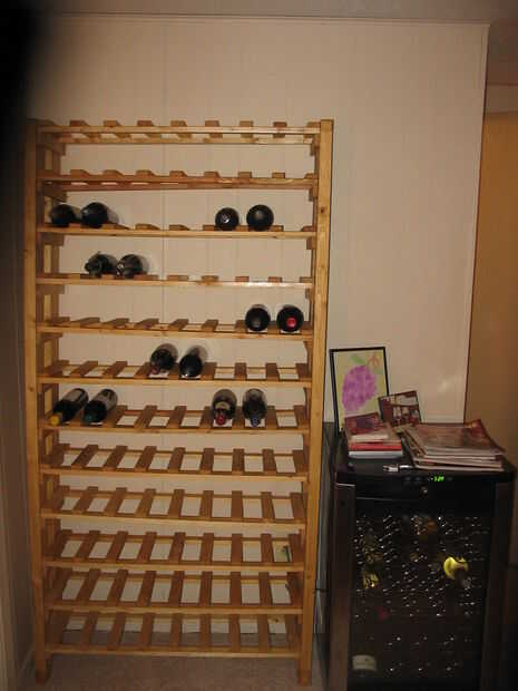 Mi objetivo era construir la mayor capacidad posible que quepan en el espacio que tenía para él y pagar menos de $100. Mi resultado fue un rack de 96 botellas de vino que costó $96,48 (antes de impuestos)... poco más de $1 por botella! Y si yo no la mancha, habría sido $75,93 antes de impuestos ($0,79 por botella). Las dimensiones finales de mi estante del vino son: 36,5 "x 72" x10.5 "(WxHxD)
