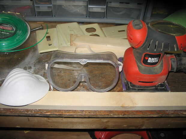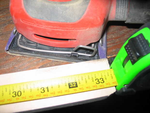 Depende de usted si desea lijar o cortar primero... Hice ambos sentidos durante el proyecto. Personalmente, he preferido tomar 3 o 4 de las estacas de jardín y lijar en todas las dimensiones "largas" al mismo tiempo, entonces medir todos ellos, luego cortarlas todas y luego Lije los lados restantes (los lados pequeños de 1 x 2).