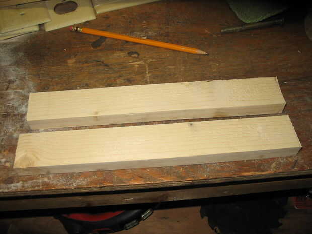 Tomar 6 de la 1 x 2 x 24" estacas, lijar y mide 10.5" y 21" desde el extremo cuadrado. Corte en los puntos 10.5" y 21" y los extremos de la arena. Esto le dejará con 12, 10.5" piezas.
