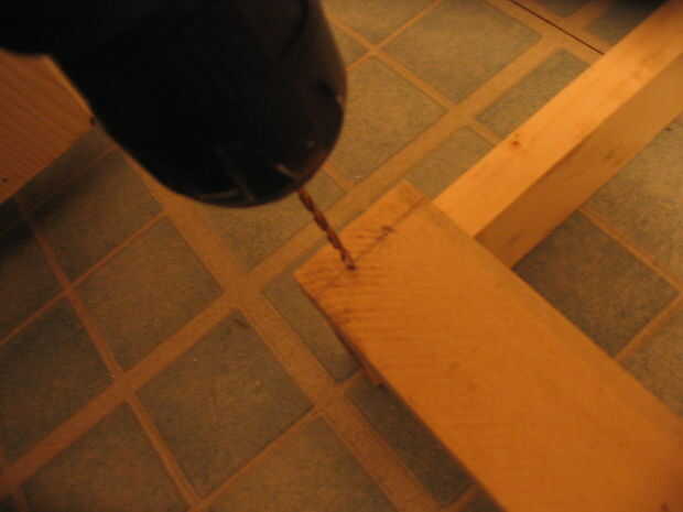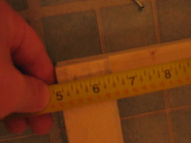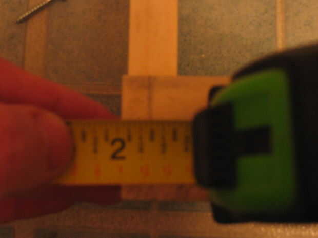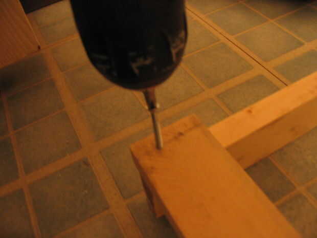 Para hacer esto, me mide 5/8" desde el borde exterior del marco en ambos lados; es decir, engañé a la posición del tornillo 1/8" hacia el exterior del centro. Hice esto para asegurarse de que no tengo el tornillo de la pieza siguiente hasta topar con este tornillo. La otra dimensión puede ser centrado (3/8"). Marque esta posición y usar la 3/32 broca para hacer un agujero piloto para el tornillo. Entonces utilice el taladro el tornillo en el agujero. Asegúrese que el tornillo de cabeza completamente pasado rasante (contador hundido) para que no interfiera con el paso siguiente.