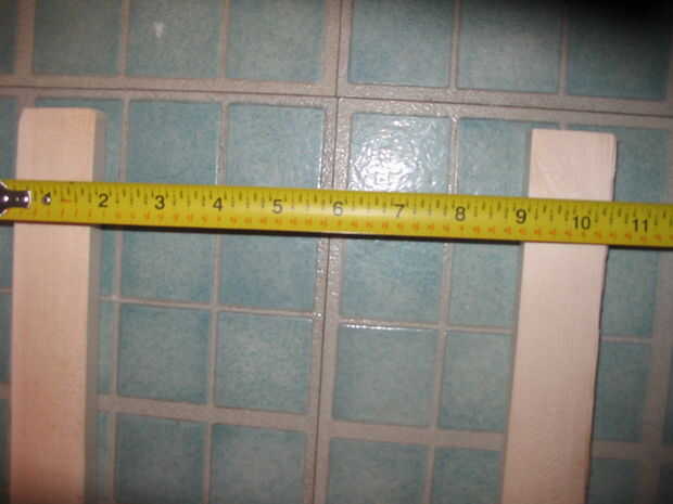 Colocar las 2 piezas largo paralelo a uno otro y separar las piezas por 10.5"(midiendo desde la parte exterior de cada pieza). Asegúrese de tomar la medición en varios lugares a lo largo de la longitud de las piezas para que las piezas sean efectivamente paralelas.