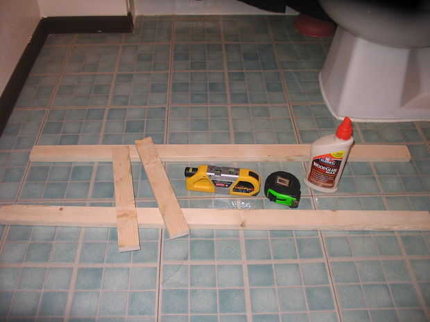 Ahora toma 2 de las piezas cortas y coloque su parte 1"(0,75") a lo largo de las 2 piezas largo donde pones el pegamento de madera. Usted querrá asegurarse de que obtener el lado final tan al ras como sea posible. También tenga en cuenta que el interior y la parte inferior de estas piezas será la más visible, así que mantener los lados feos al exterior y el lado del pegamento.