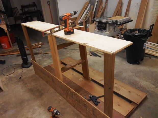 A continuación, yo en caja en la estructura con el resto de las secciones de vigas y madera contrachapada. Comencé enroscando en una tira de madera a la viga media inferior primero y luego añadió una parte superior asegurándose de que al cuadrado todos los rincones. Usé el desecho de madera más grueso había disponibles para la parte superior, cuadrado y atornillados a las vigas. Después de eso, volví y tornillos ha añadido a la franja inferior a las vigas.