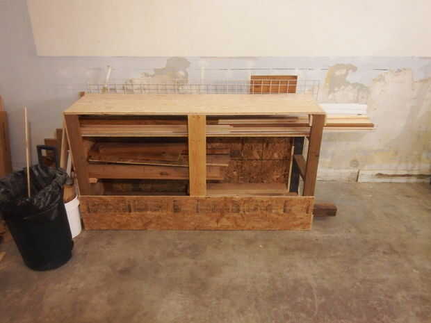 El estante de madera del edificio realmente se deshizo de la mayoría de la madera así que no había mucha madera para almacenar después, pero sería muy útil como madera nueva viene porque se pone sucio rápidamente.