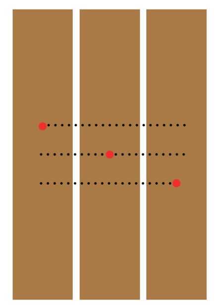 El rebordear de partida se utiliza para fijar el bastidor a la pared - esto puede hacerse ya sea atornillado a la pared o usando un adhesivo. Quería tener todo este rebordear vertical y en el mismo nivel (ver primera imagen de "final y poner para arriba"). Esto significa que los agujeros deben estar en lugares diferentes: el grano medio en el centro, la izquierda y derecha: la mitad de su elevación (mina era 38mm, lo que significa 19mm desde el centro) se refieren a la imagen 5. Marcar los agujeros y les taladro taladro a través de los rieles y la madera adicional en el medio asegurándose de que no taladra en los tornillos, conectar los carriles juntos. No atornille los soportes de pared todavía aunque.
