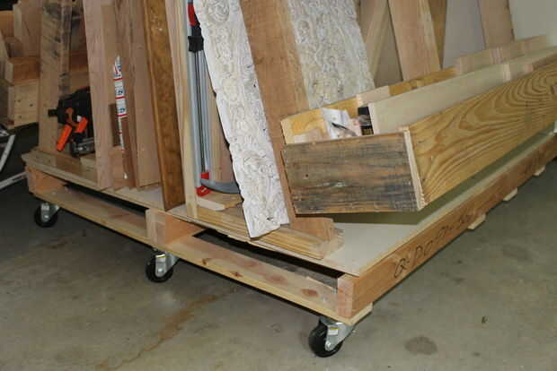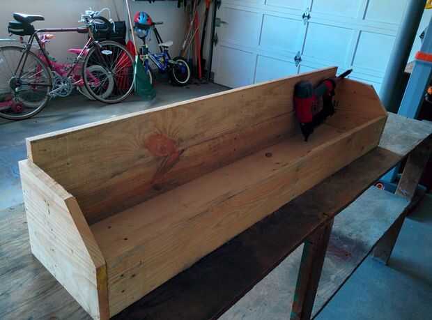 Algunas de las paletas tenían tableros de 9" de ancho y otros 3.5" y 5". Usando una combinación de tarjetas hice 6 cajas aproximadamente 51" de ancho con una neumática grapas grapadora y 1.5".