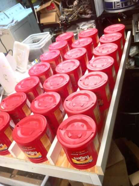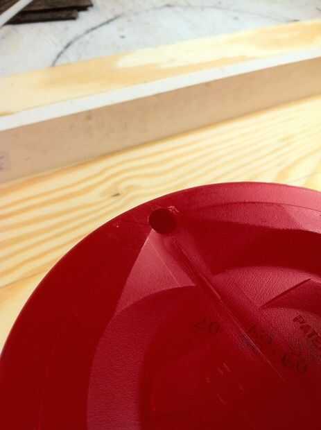 En estos recipientes rojos, había un punto conveniente donde dos de las costuras del molde plástico vinieron juntos que hizo fácil golpear siempre el mismo lugar en cada uno. Asegúrese de que mantener los contenedores en la misma orientación por lo que cuelgan en la misma dirección para un buen aspecto uniforme.