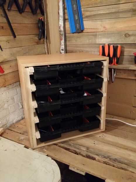 En la primera versión de este proyecto, alguien sugirió en la sección de comentarios que caja rack para que sea más robusta, y quitar el tren se detiene para que uno pueda quitar los cajones para ponerlos en la mesa de trabajo cerca de cuando se trabaja en un proyecto.