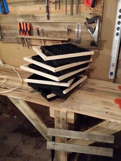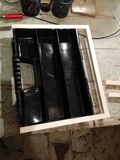 Ahora, mida el ancho del cajón y cortar 1 palo de madera y atornillar en los 2 carriles que usted sólo montado. Repita el paso para todos los cajones.