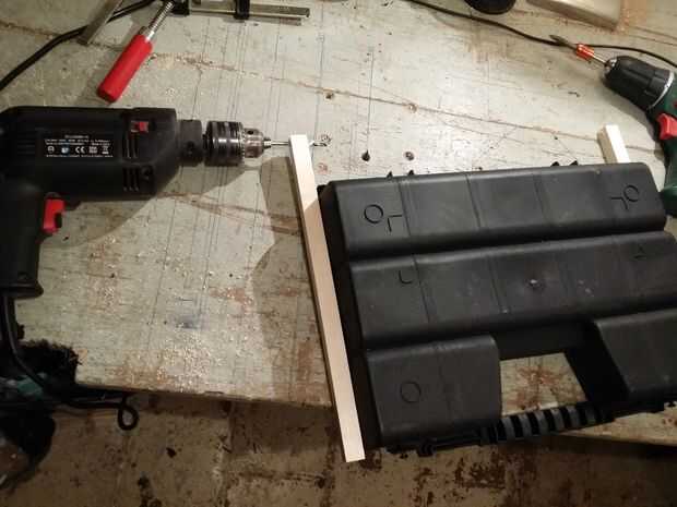 Mida la longitud de la caja de tornillo para saber cuánto madera necesita para hacer el carril.