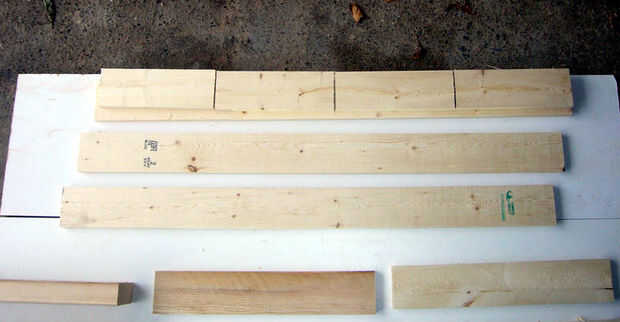 Cortar uno de lo 5/8 "x 3" x 37 "tablas en cuatro 5/8" x 3" x 9" tableros