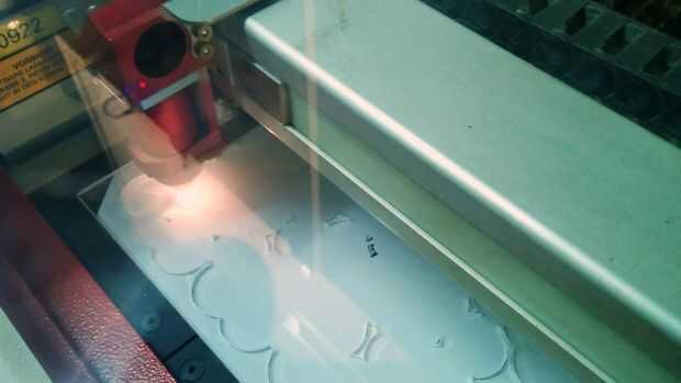 La configuración del láser en la foto es de Trotec Speedy 400 80 W en el Fab Lab Berlín.