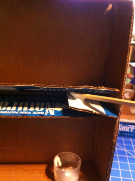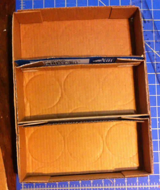Pegar todas las capas juntas asegurándose de que pestañas pequeñas se encuentran en el medio y el estante limpio está en la parte superior y luego la abrazadera para que se seque. Sólo usé algunos clips de oficina, como el pegamento pegajoso se seca bastante rápido.