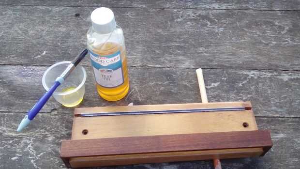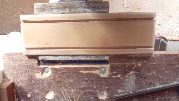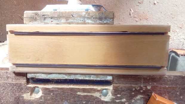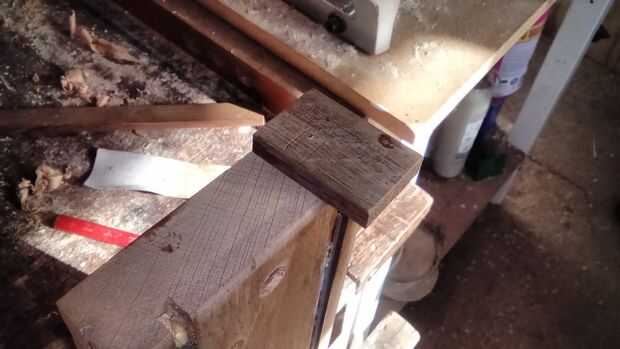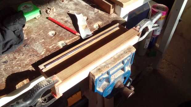 2) cortar un pedazo de madera apenas un poco más largo que las barras magnéticas y lo suficientemente amplia como para apoyar la hoja de los cinceles. Limpieza con la lijadora y plano.