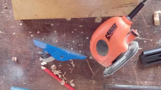 5) corte dos bloques pequeños para el final del protector de la hoja, deben permitir suficiente espacio para que la hoja pase detrás pero no deje que los dedos.