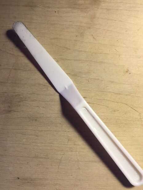 Inmediatamente después de que hayas colocado la imagen en la cubierta plexiglás, use una espátula de pintura offset barata para mejorar la imagen en el medio de gel. (Comienzo a desde el centro de la imagen, trabajar las burbujas del centro al borde).