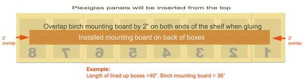 Pegar las cajas en su lugar en el tablero. Permiten una dos pulgadas de cada caja final (#1 y #8) a ambos extremos (ver imagen) de la proyección.