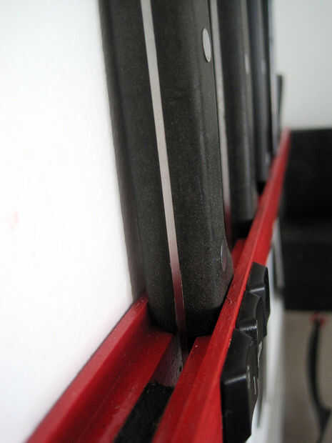 2. cortar y pintar el "espaciador" - básicamente utilicé un pequeño trozo de esta misma tabla de perfil L - esto le dará algo de espacio entre dos tablas para navaja puede pasar a través de