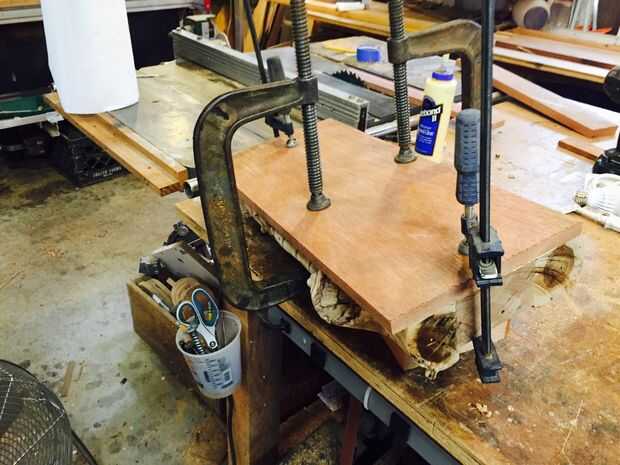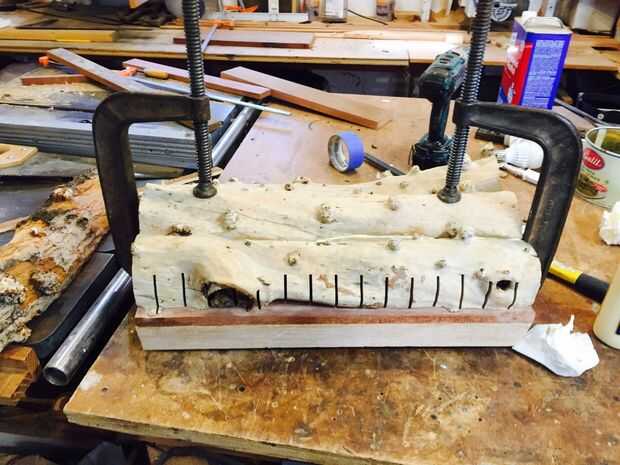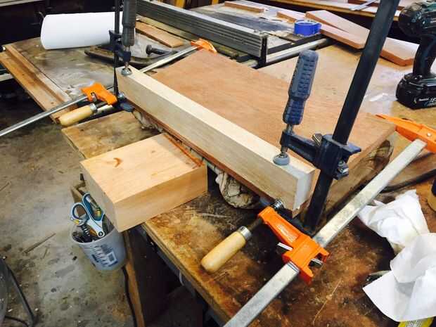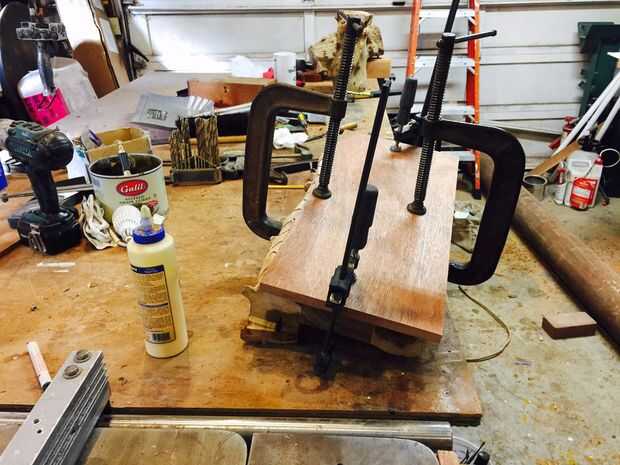El pegamento en la parte posterior. Espere toda la noche fijar y pegar los pies. El pie añade estabilidad, para obtener el ángulo correcto para la mina de que sólo estaba el cuchillo parrilla contra la hoja la tabla VI y ajusta el ángulo de la cuchilla hasta que coincida con el estante del cuchillo. Después de pegar la espalda y los pies, pegué otra pieza de madera en la sección media; porque parecía mal sin ella. No tenga miedo de cambiar un diseño en cualquier momento durante la construcción.