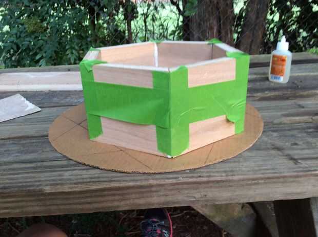 Ahora que se ha aplicado el pegamento, ensamble la repisa y únalos con cinta adhesiva la última articulación.