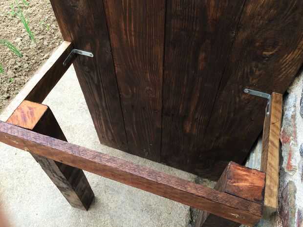 He utilizado soporte de metal para montar los paneles verticales de tres, no soluciono los estantes así puedo desarmar más fácilmente para el almacenaje del invierno. Más tarde, agregué un estante de pequeña herramienta a la derecha de la estructura (ver siguiente paso) con las piezas que había dejado de la plataforma.