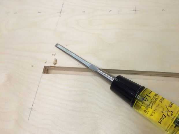 También puede perforar algunos agujeros de la esquina en los extremos de las ranuras para facilitar el corte/cincelado. No hacer esto y lo lamento - le recomiendo que no hagas.