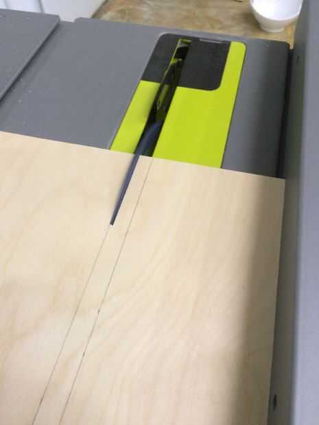MESA sierra NOTA: Asegúrese de no cortar toda la longitud de la ranura marcada en la parte superior de cada tabla con su sierra de mesa. Si lo hace, la hoja en la parte inferior de la Junta se interrumpe ya en la madera, y vas a ver esas marcas una vez que la parrilla se coloca juntos. En su lugar, parada corta para que la hoja de la sierra sólo corta al extremo de que la ranura se supone que es. Tendrás que hacer unos cortes para verificar esta longitud, para mí fue de 1,75".