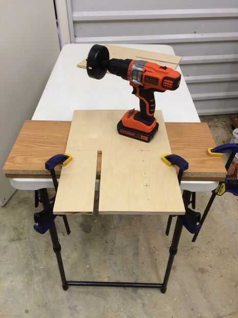 SEGURIDAD primero: en primer lugar, usted necesita garantizar su madera para que no se mueve cuando usted corta los agujeros. Esto puede parecer trivial para aquellos que sentados en el sofá leyendo esto, pero es muy importante porque la broca del agujero se plantan y tratar muy duro lanzar la madera derecha detrás en usted. Así que uso algunas abrazaderas para garantizar su trabajo, evitar algunas lesiones desagradables.