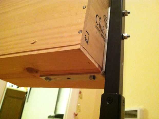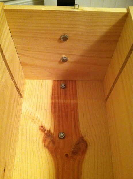 Hacer lo mismo con la tuerca hexagonal más largo, pero seguro mediante la inserción de la tuerca hexagonal desde el interior hacia el exterior de la capa de rack. No importa qué camino usted asegurarlo, sólo encontramos más fácil hacerlo de esta manera. Porque nuestro agujero inferior y lado eran tan cerca uno del otro, para fijar tanto en el interior de la caja habría hecho apretando la tuerca un poco más difícil. Por lo tanto, parece que fueron solo perezosos.