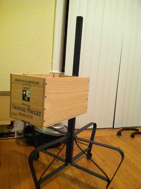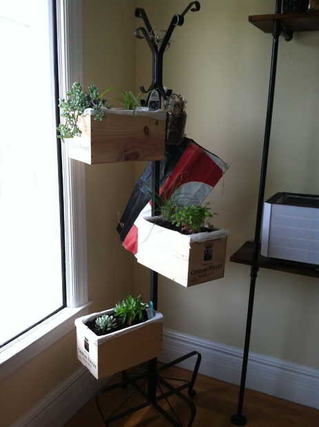 En una nota lateral, pensamos que habría que reforzar el perchero al piso debido al peso de suelo/flores, pero tuvo bien. Dependiendo de lo que se utiliza como el asimiento vertical, que tenga que añadir peso al lado de oposición.