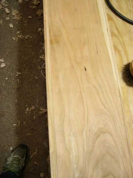 Había preparado el caldo por la tabla para cortar a una longitud de 48" y había aplanado de ambos lados con una garlopa Stanley #7. Luego articuló un borde del tablero y marcó el borde opuesto con un lápiz a mi ancho de 6 pulgadas y luego cepillar hacia abajo hasta que tuviera la anchura correcta. Yo entonces cuidadosamente al cuadrado hasta los extremos del tablero utilizando un plano suavizado Stanley #4.